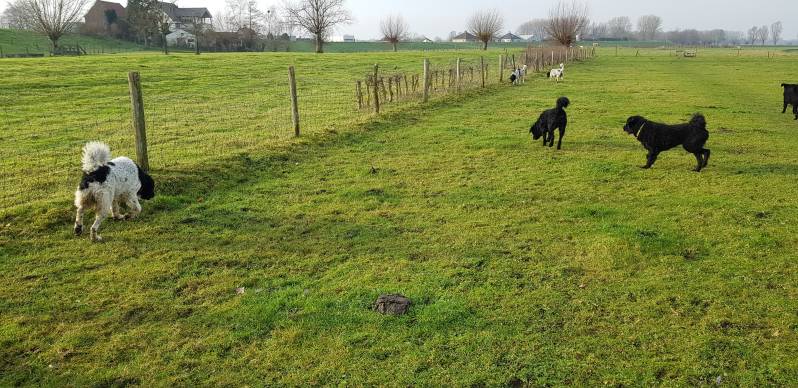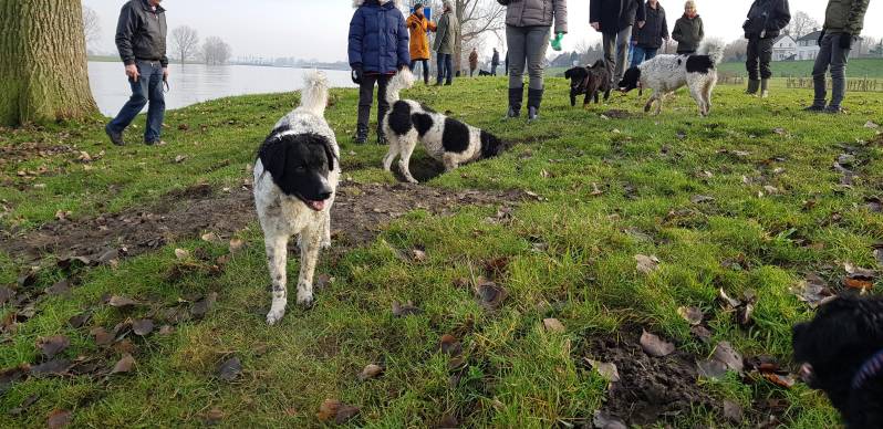 Hieronder wat foto's van de 1e verjaardag van de pups. Mieske en haar broertjes en zusjes hebben hun verjaardag gezamenlijk gevierd en lekker gerend en gestoeid aan de uiterwaarden van de Maas. Het was een gezellige middag.