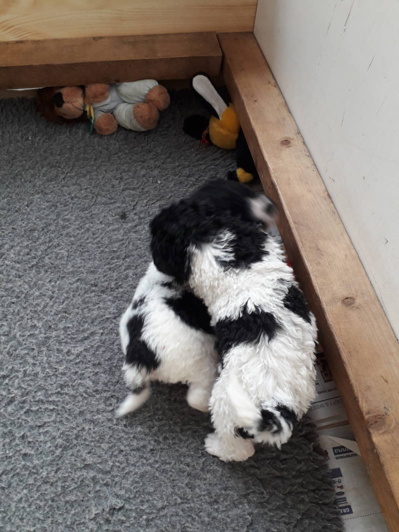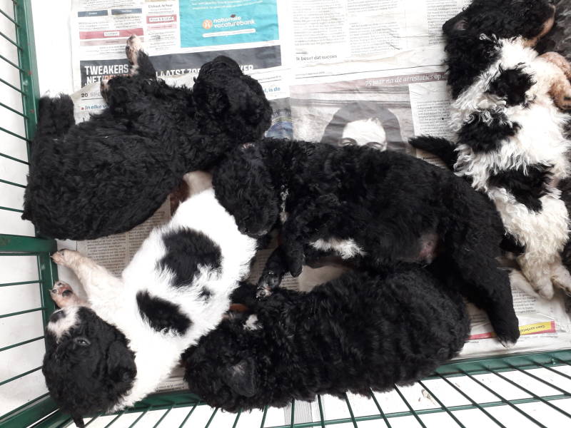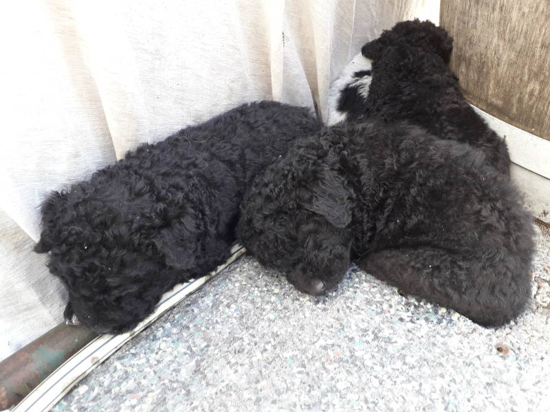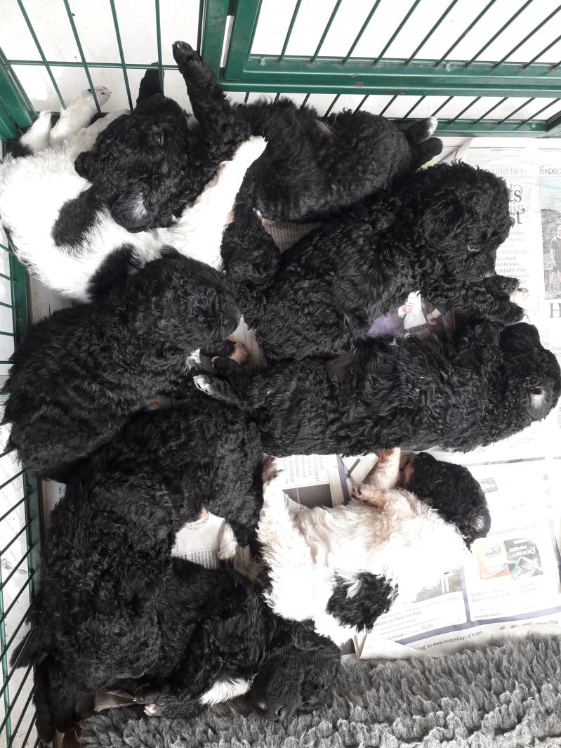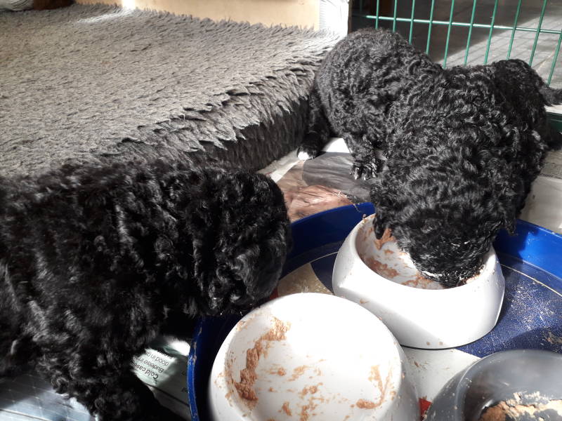 Afgelopen donderdag waren ze alweer 4 weken en zijn het al echte hondjes. Ze krijgen nu 3x daags vers vlees van FarmFood en dat vinden ze lekker.. Earke voedt ze ook nog een paar keer per dag.