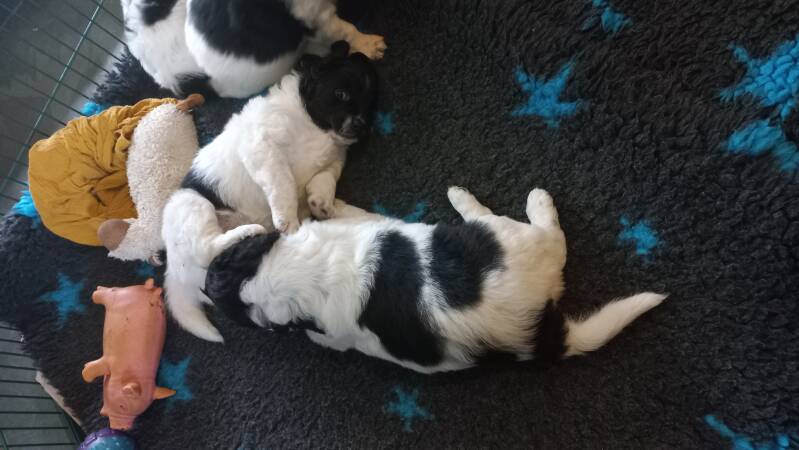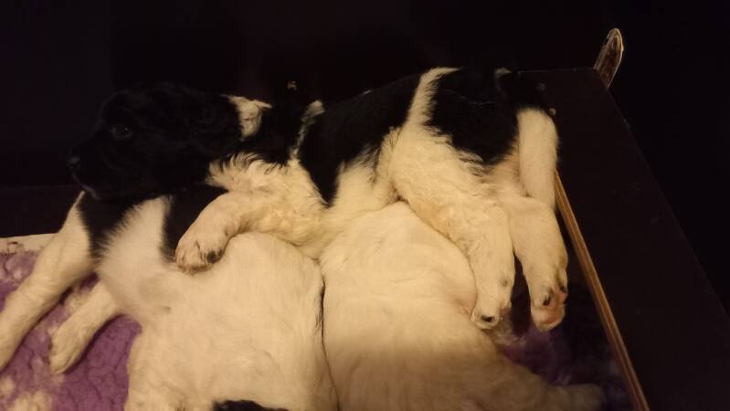 De pups zijn alweer 5 weken. Ze krijgen nu 4x daags vers (rund)vlees van FarmFood. En ze groeien hard, erg hard zelfs. Mieske voedt ook nog steeds, ook al gaat het soms niet van harte. Het was wederom een drukke week met veel bezoek voor de pups. Ook bleven onze kleinzoons een nachtje logeren en die hebben lekker gespeeld met de pups. De pups van Pleun zijn verhuisd naar de serre en we zijn begonnen om de pups van Mieske er af en toe bij te zetten. In het begin was het wat wennen maar na een paar keer vinden de pups van Mieske het geweldig. Ze spelen en stoeien mooi samen. Met het eten en in de avond en nacht zijn de pups van Mieske nog in hun eigen rennetje in de woonkamer. Vandaag, 6 januari, is een medewerker van de Raad van Beheer geweest en zijn de pups gechipt en er is DNA afgenomen.