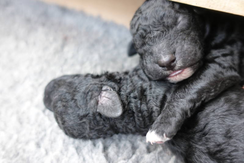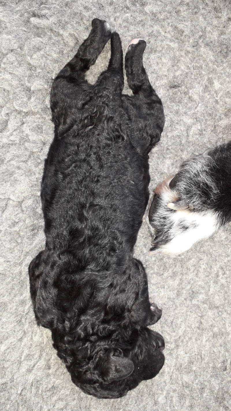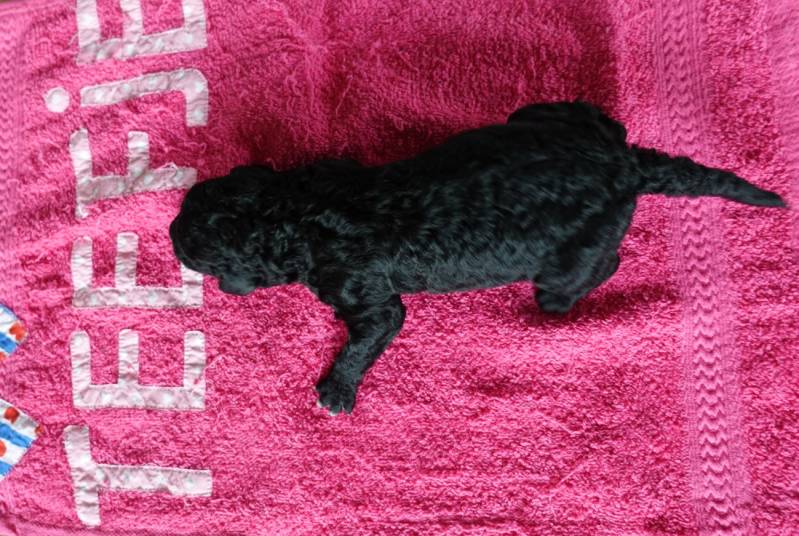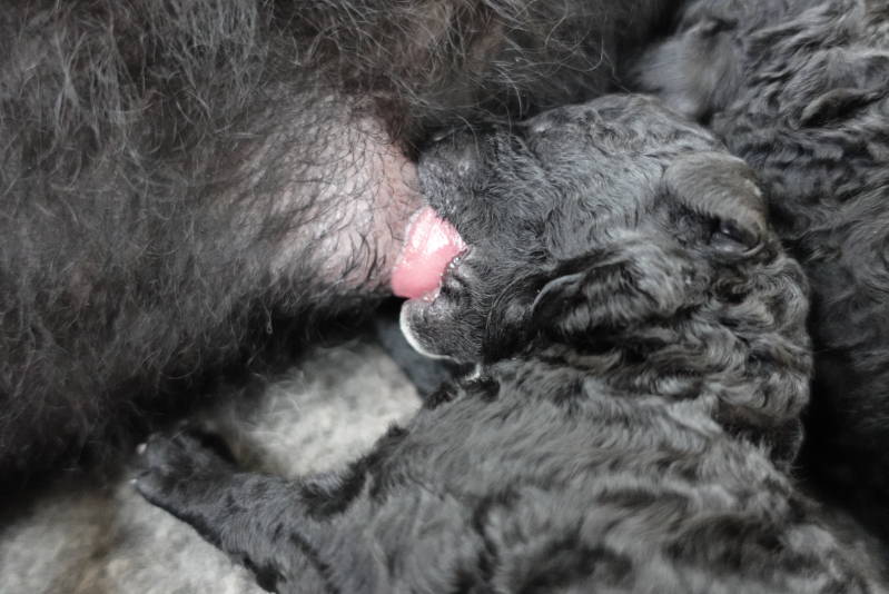 De tweede pup is een zwart teefje. Geboren om 14.27 uur.