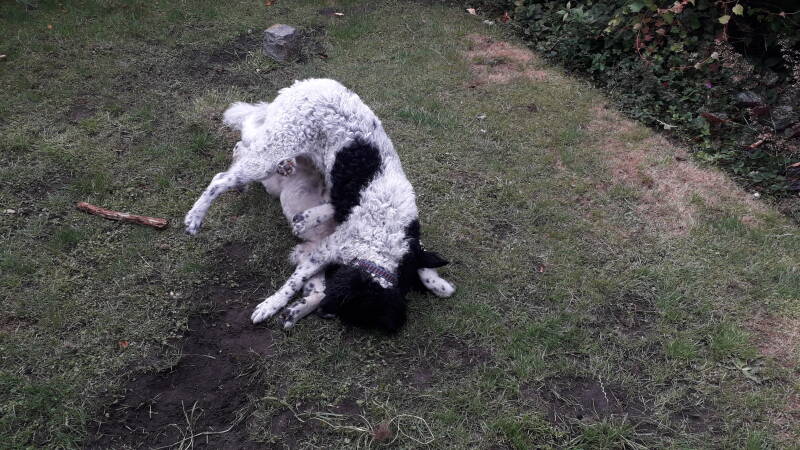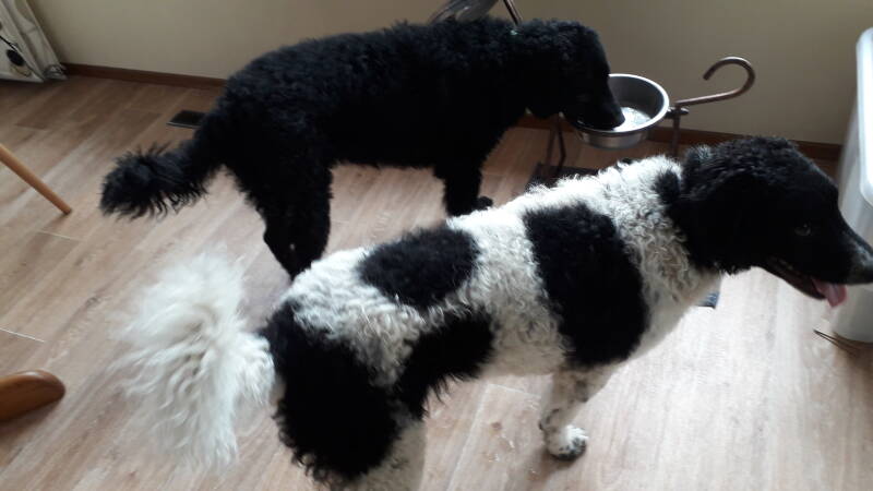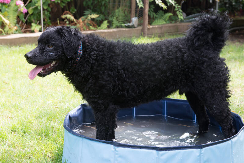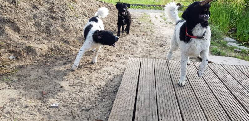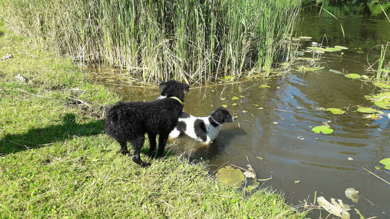 Op dinsdag 23 juli gingen we op bezoek bij Doke. Doke wordt door zijn baasje ook wel Krolleke genoemd, hij heeft een prachtige krul in zijn staart. Doke woont ook in Noord-Brabant samen met Molle, ook een wetter. Mieske mocht weer mee en het was prachtig weer. Ze hebben verkoeling gezocht in het water. Krolleke is een echte zwemmer.