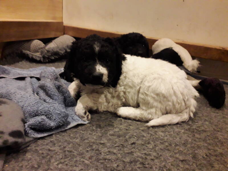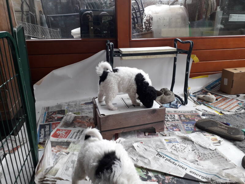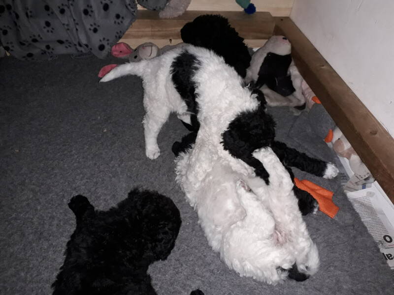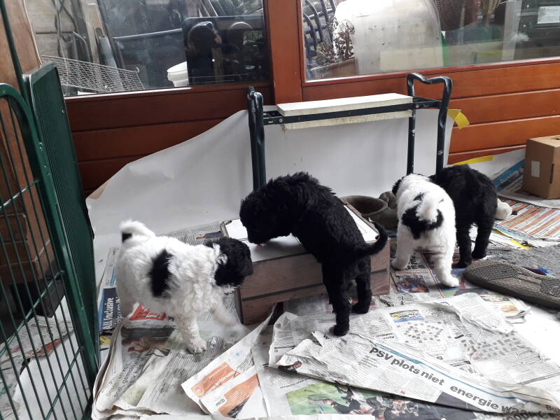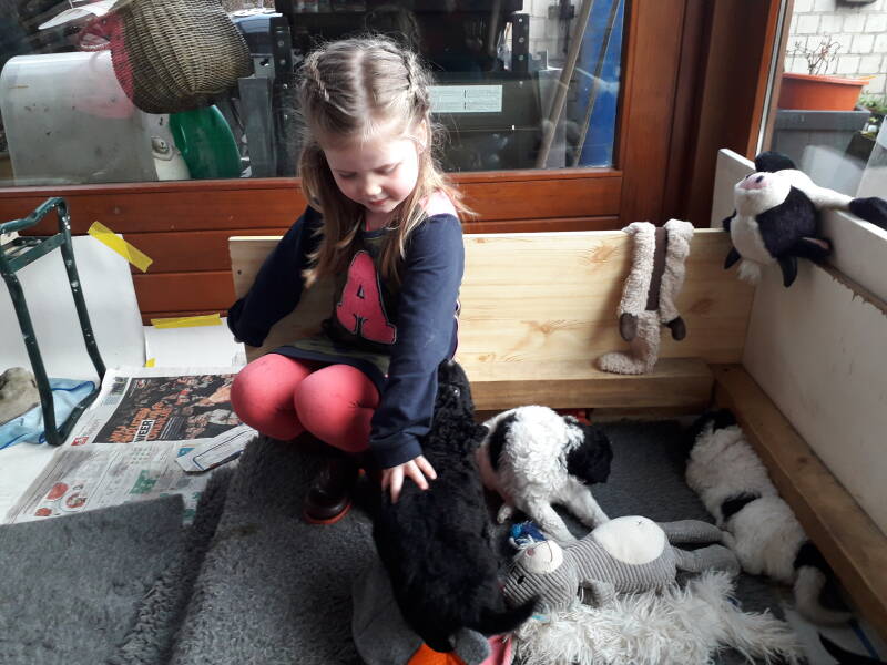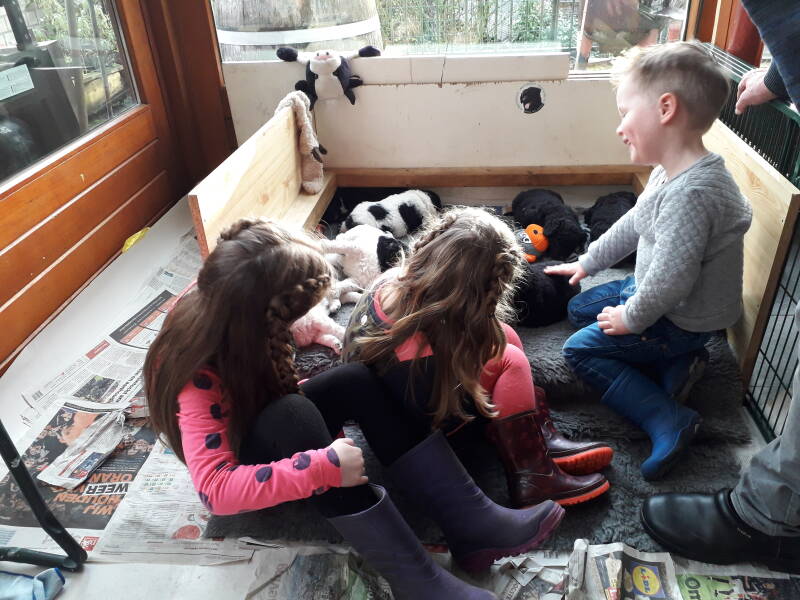 De kleinkinderen vinden het ook leuk om te spelen met de pups.