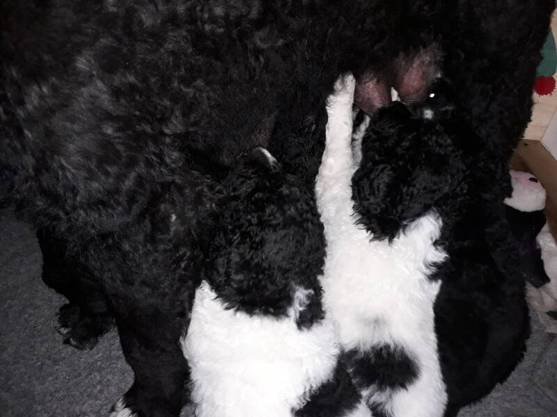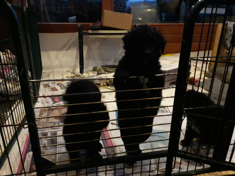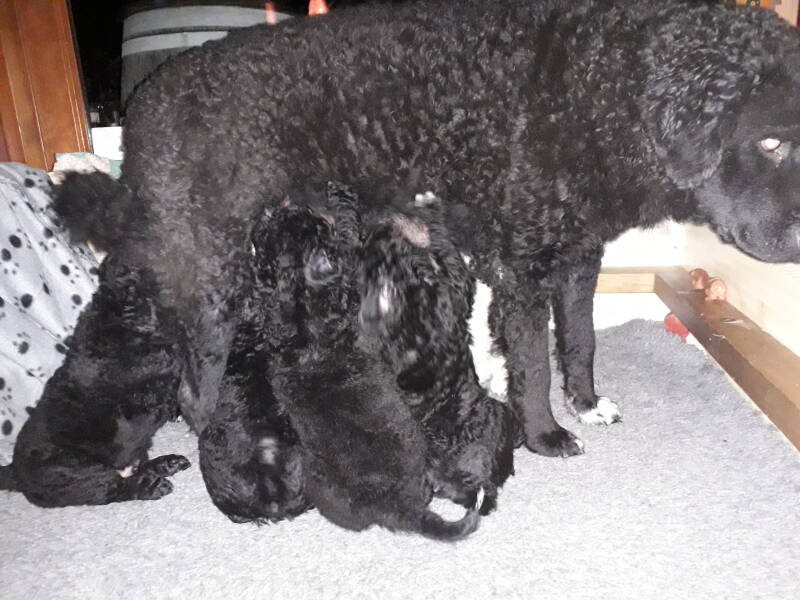 De laatste dagen voedt Vrouke de pups staand. Een mooi gezicht om te zien.
