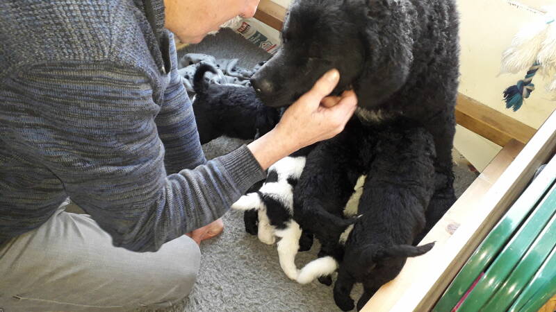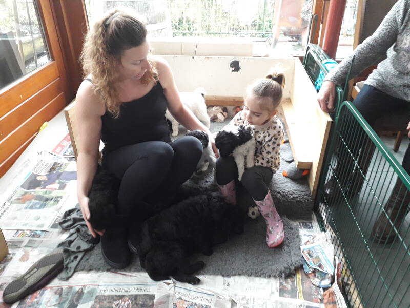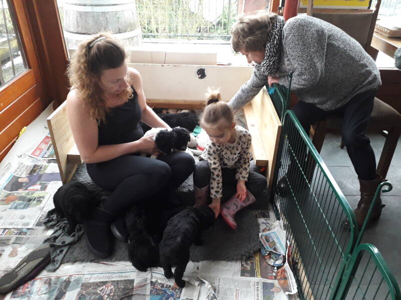 Familie komt ook regelmatig langs om met de puppy's te knuffelen.
