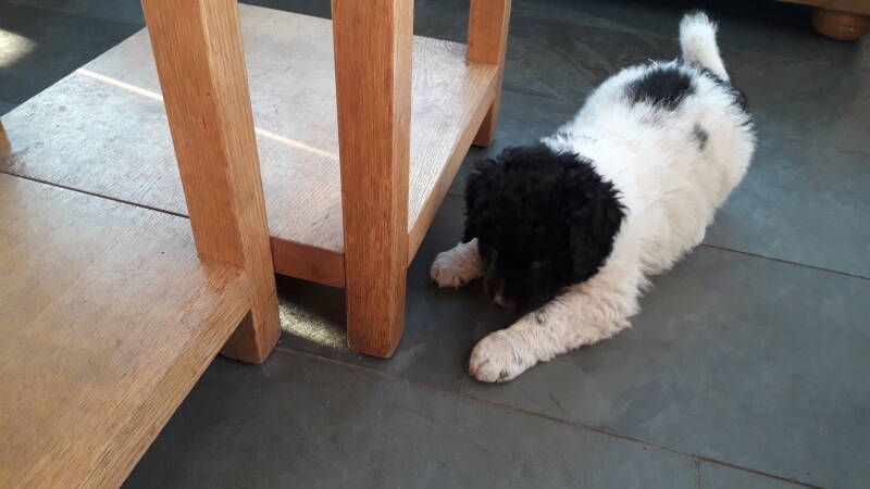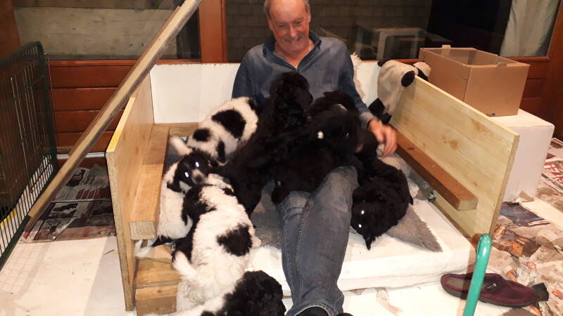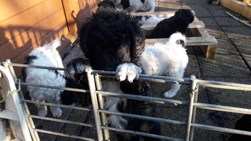 De pups zijn alweer 7 weken. Deze week is de dierenarts langs geweest om ze na te kijken en hun 1e enting te geven. Dierenarts Rimke vond het een "zen" nest en was dik tevreden. De pups zelf ook want van het spuitje hebben ze weinig gemerkt.