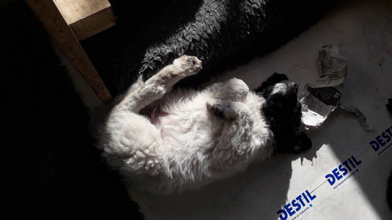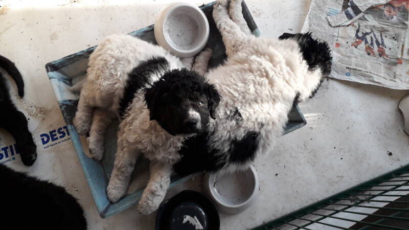 Vanavond, in het vroeg van de avond, was ik 2 pups kwijt. Ze lagen heerlijk buiten onder het afdak te slapen. Het worden echte buitenhondjes.