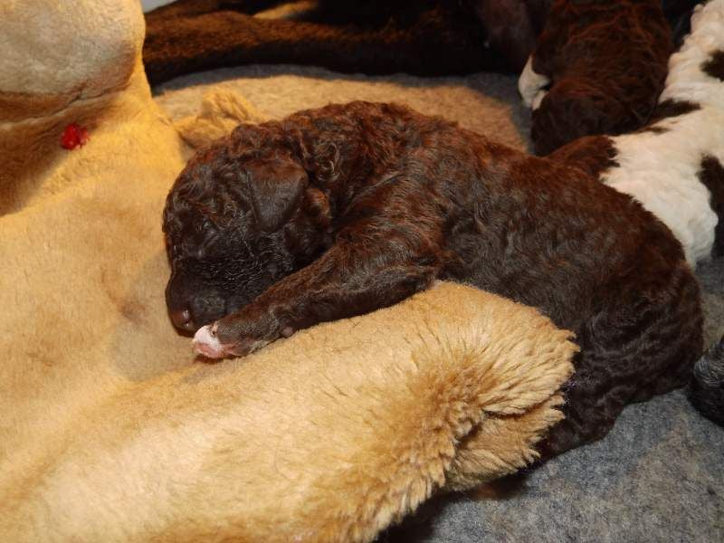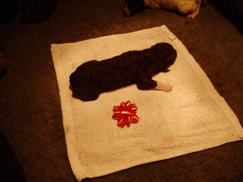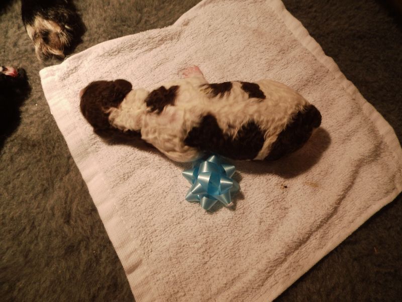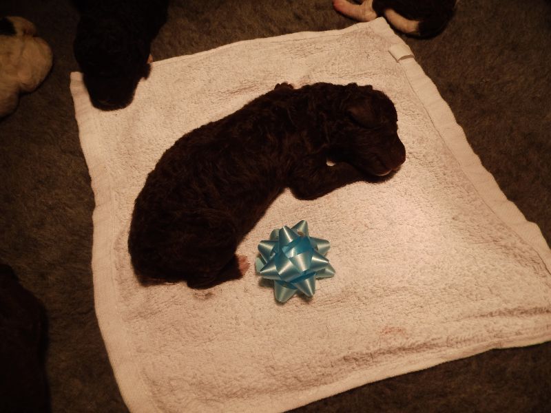 De tweede pup is een bruine reu. Geboren om 6:00.